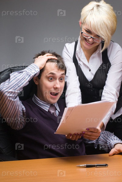 Босс с помощником читают документы