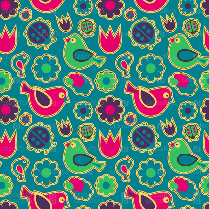 Бесшовный узор. Птицы и цветы