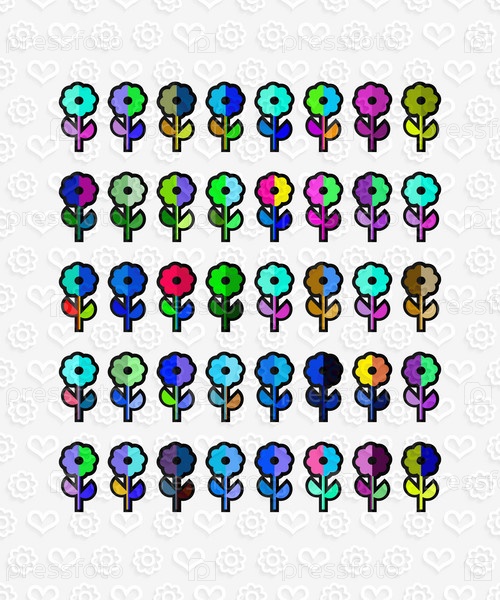 Бесшовный фон из разноцветных цветов в стиле ретро
