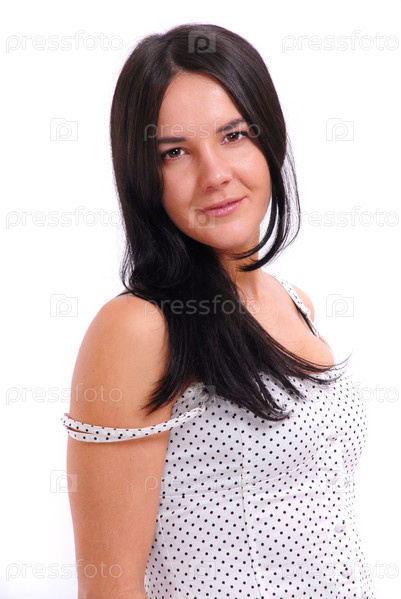 Портрет брюнетки на белом фоне