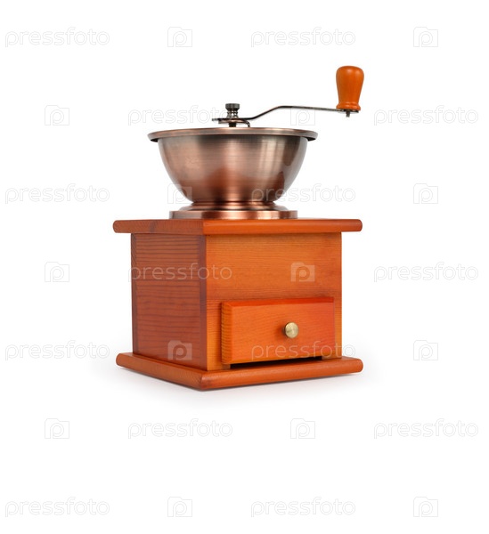 Ручная кофемолка на белом фоне