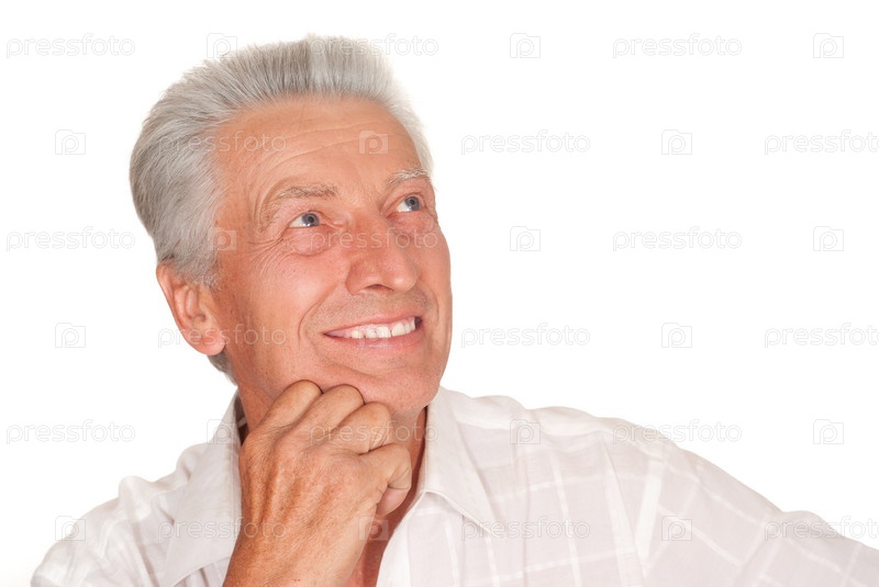 Портрет седого мужчины на белом фоне