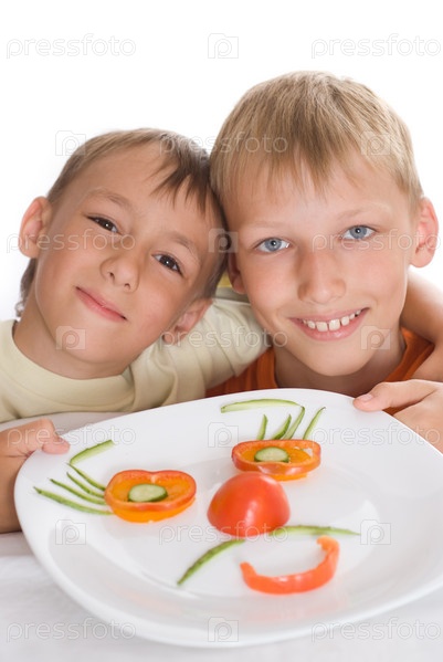 Братья с овощами на тарелке
