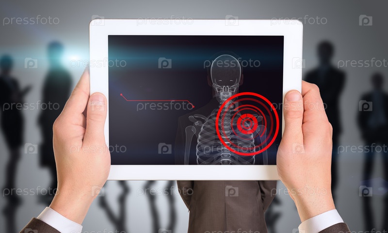 Бизнесмен держа планшет