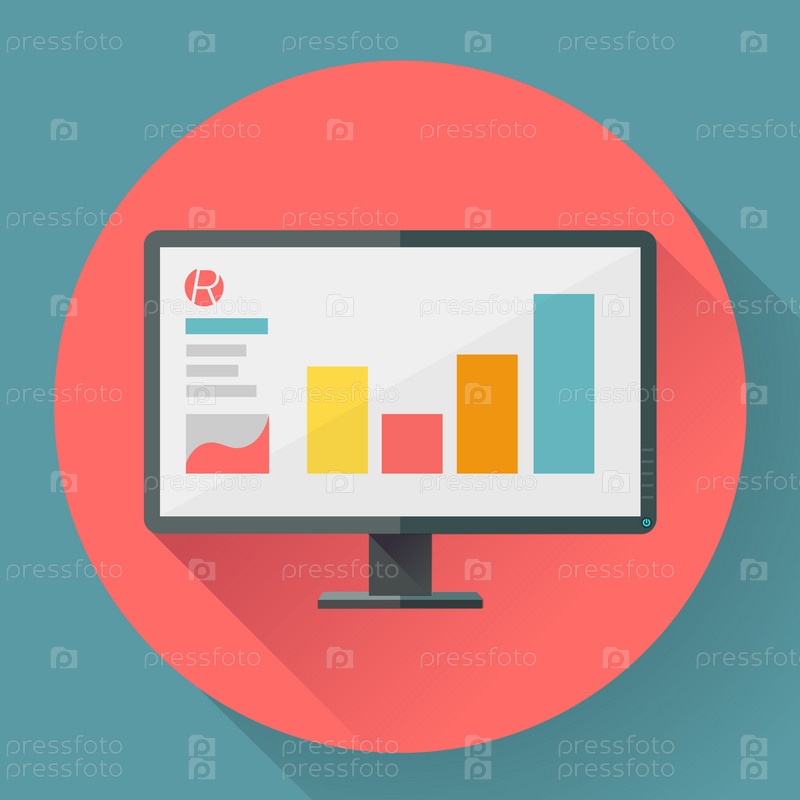 Плоский стиль икона широкий угол монитора с маркетинговые презентации