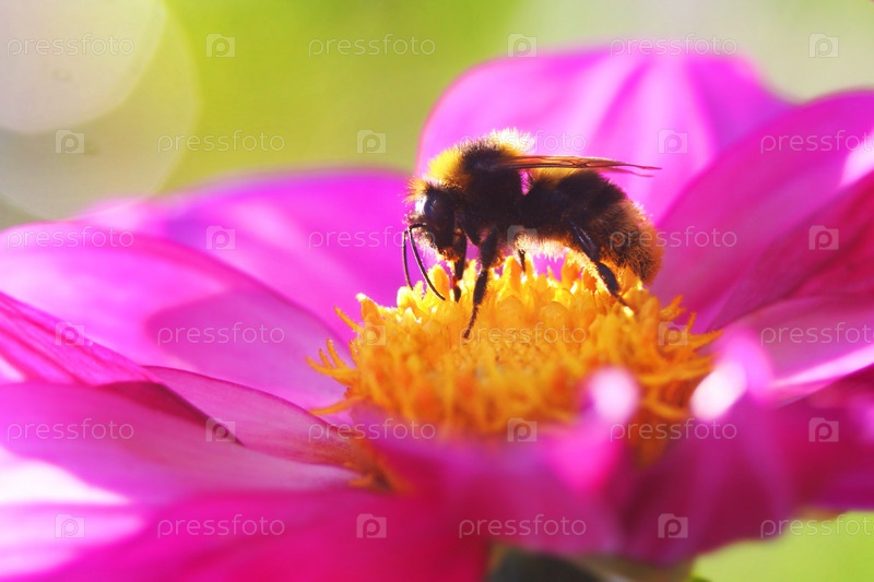 Пчела на цветке крупным планом