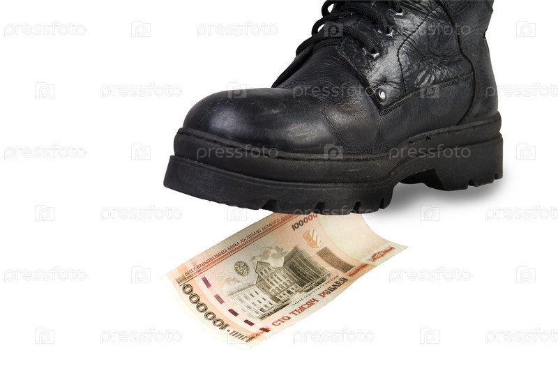 Черный ботинок у банкноты