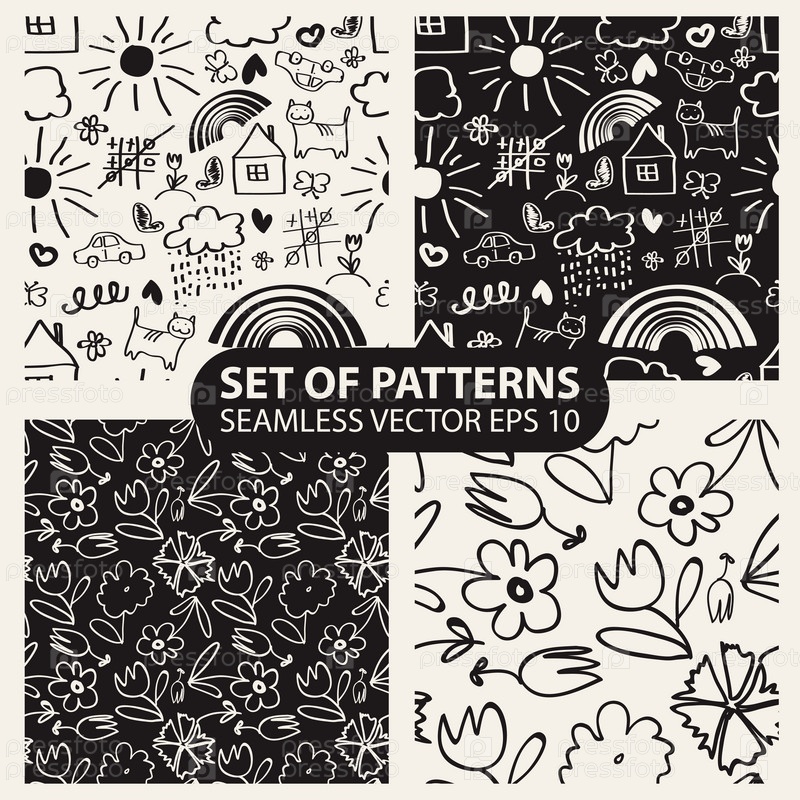 Набор рисованной бесшовные Шаблоны в стиле детей