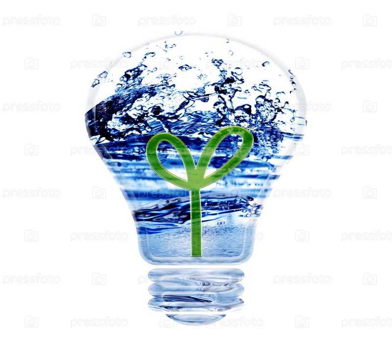 Нарисованный росток в лампочке, наполненной водой