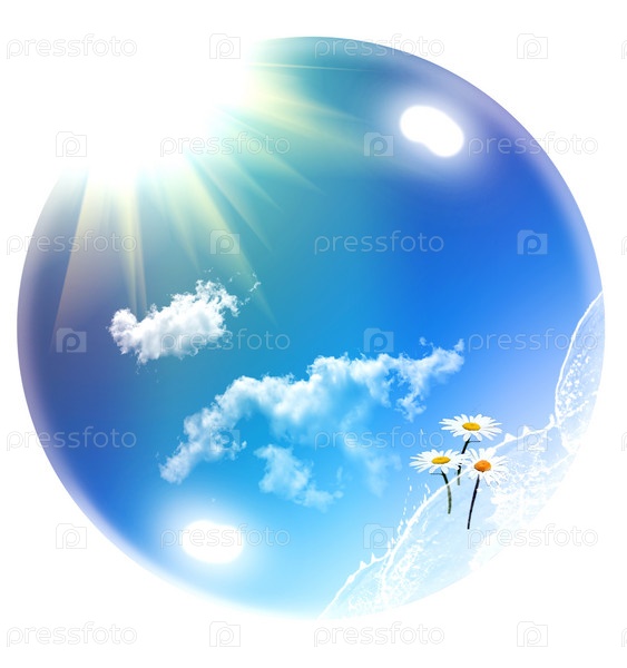 Ромашки, солнце и облака в шаре