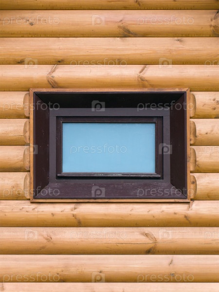 Внешний вид стены бревенчатого деревянного дома с окном посередине