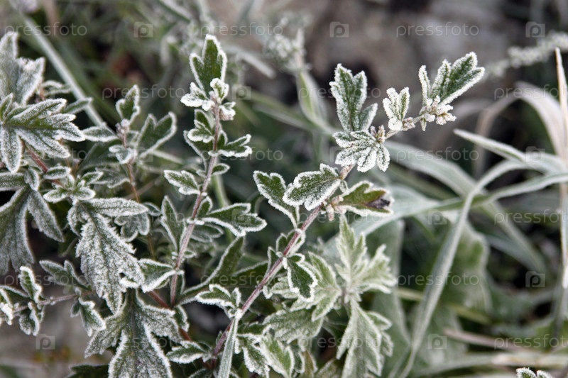 Трава, покрытая первым инеем