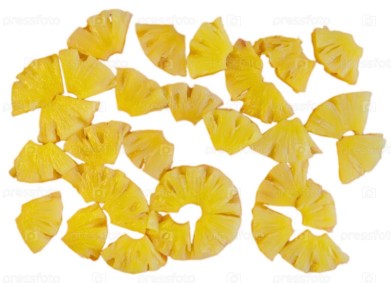 Кусочки ананаса на белом фоне