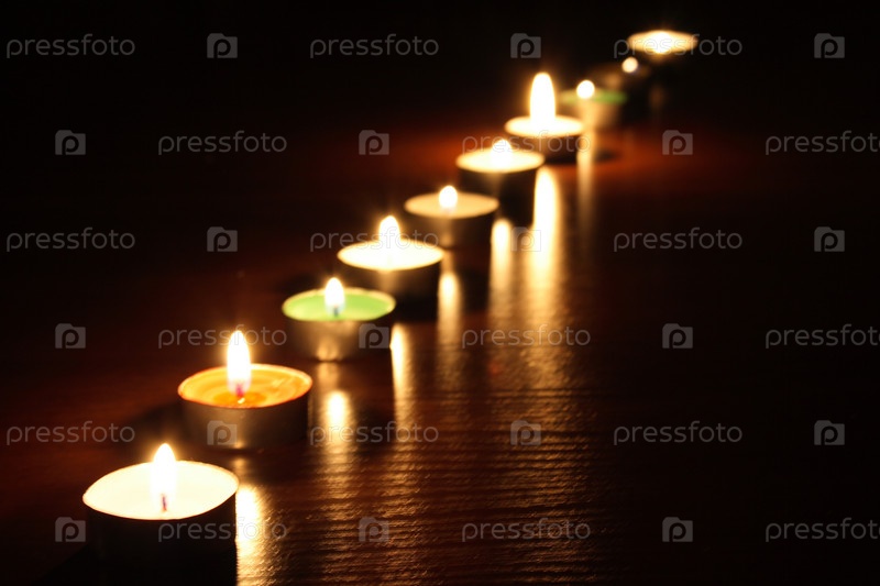 Зажженные свечи, стоящие в ряд
