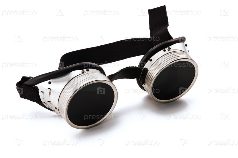 Металлические защитные очки для сварочных работ на белом фоне