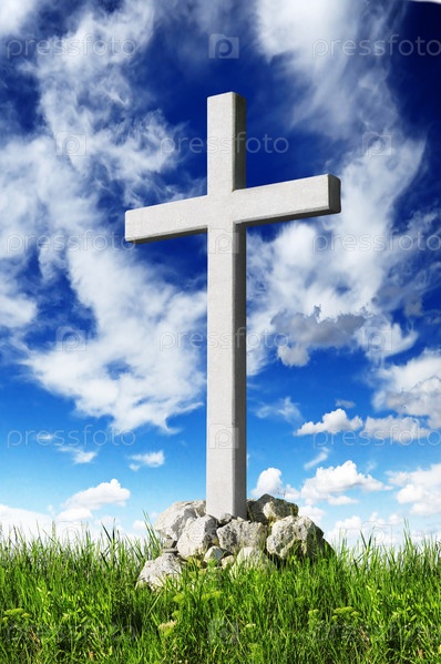 Христианский крест и голубое небо
