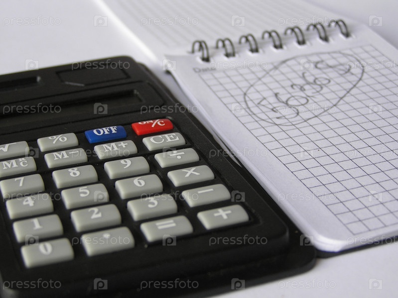 Калькулятор и блокнот на столе
