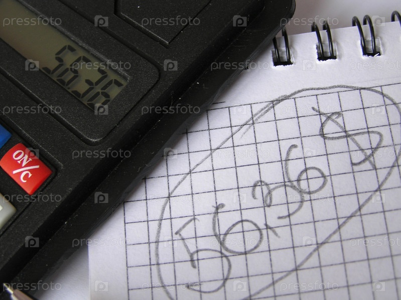 Калькулятор и блокнот на столе