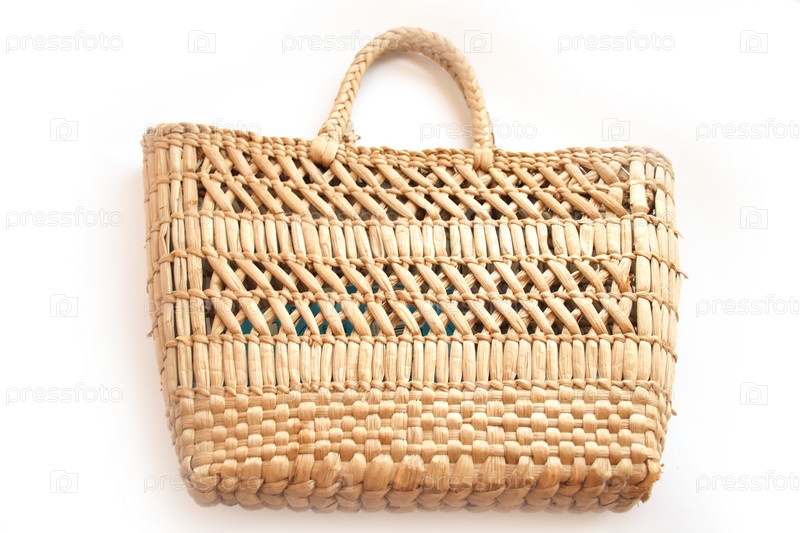 Соломенная сумка, на белом фоне