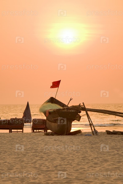 Индийская лодка на закате,пляж арамболь,Гоа,Индия