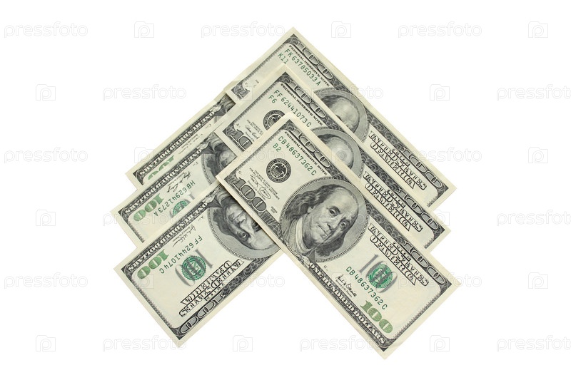 Стодолларовые банкноты на белом фоне
