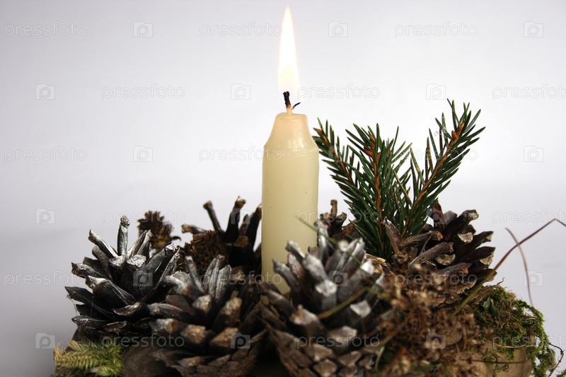 Композиция из свечи и шишек