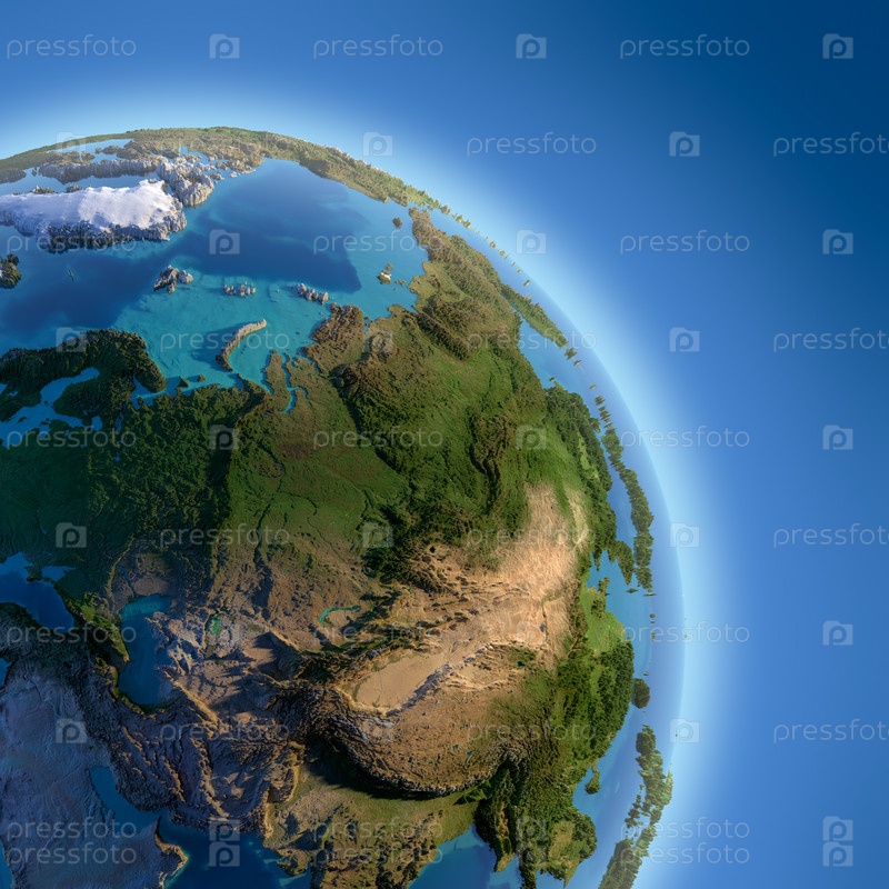 Трехмерный фрагмент Земли, вид на океаны и континенты