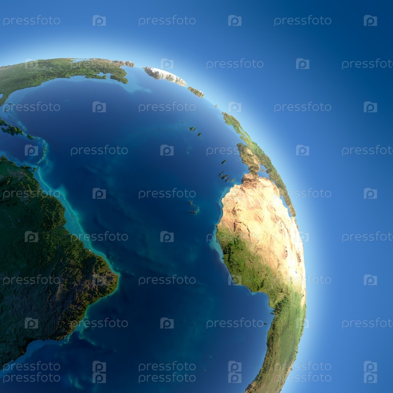 Трехмерный фрагмент Земли, вид на океаны и континенты