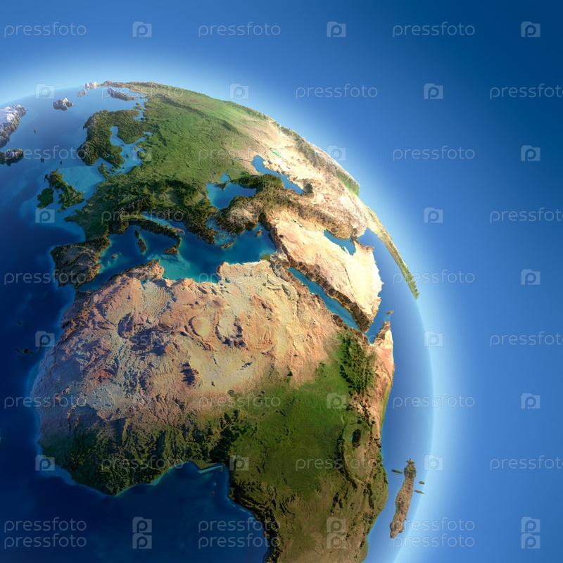 Трехмерный фрагмент Земли, вид на океаны и континенты