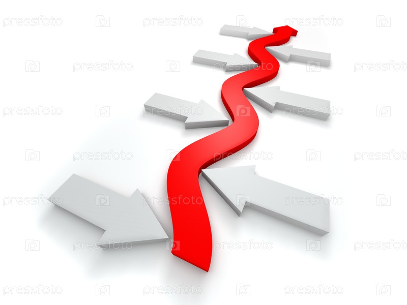 Концептуальное 3D-изолированное изображение стрелки, выделенной на белом