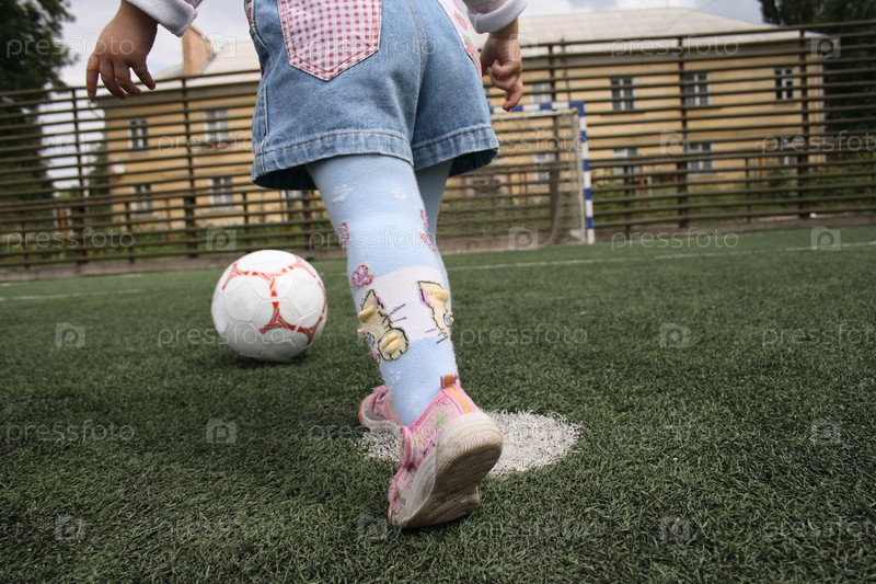 Ребенок с мячом на футбольном поле