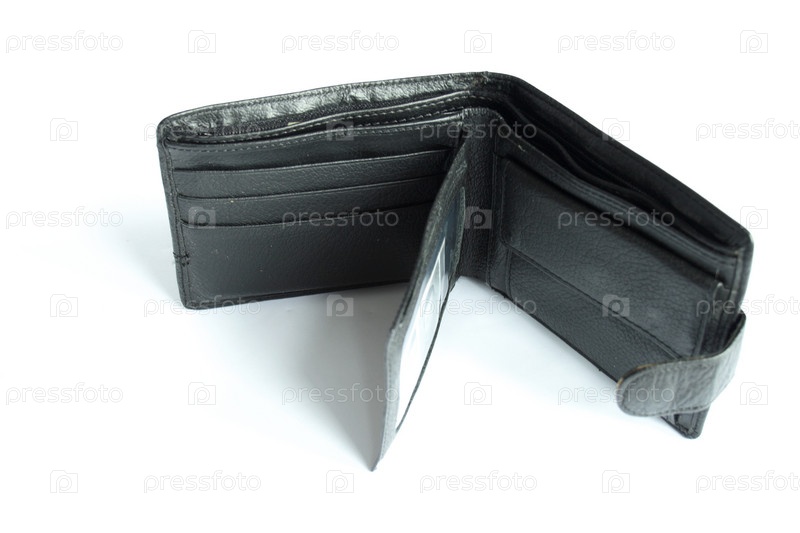 Пустой черный кошелек на белом фоне