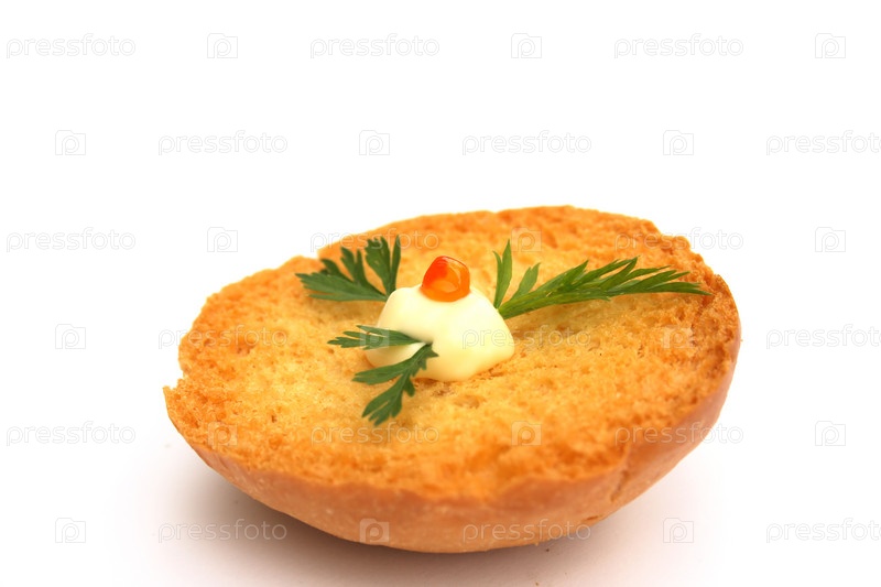 Бутерброд с красной икрой на белом фоне