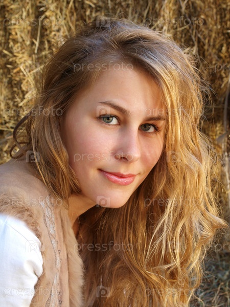 Молодая красивая девушка на фоне сена