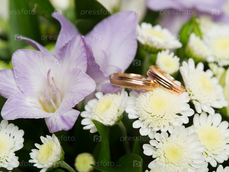 Кольца на свадебном букете
