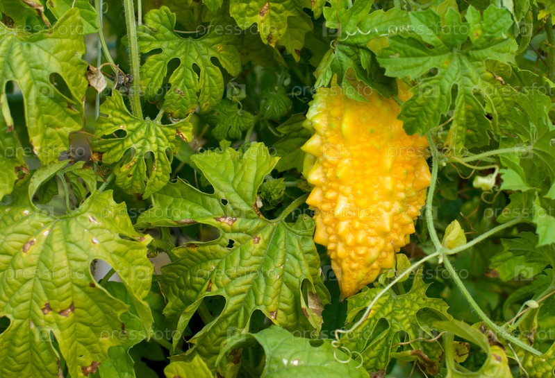 Желтый индийский огурец в зеленой листве