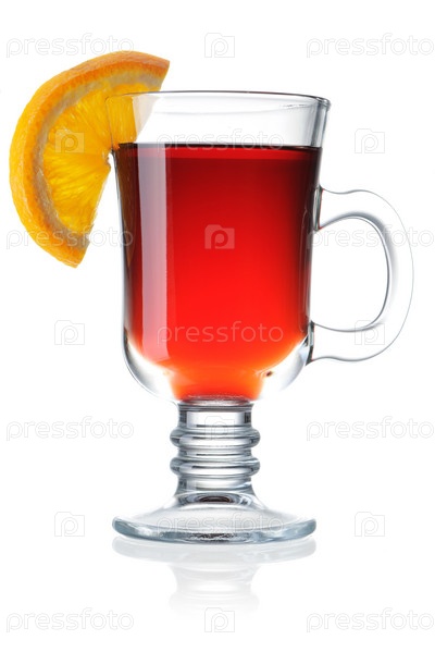 Горячий глинтвейн, изолированный на белом фоне с отражением