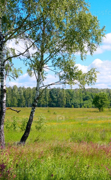 Поляна в летнем березовом лесу