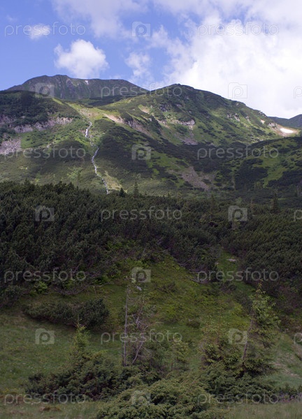 Карпатские горы с можжевеловыми лесами и каскадными водопадами