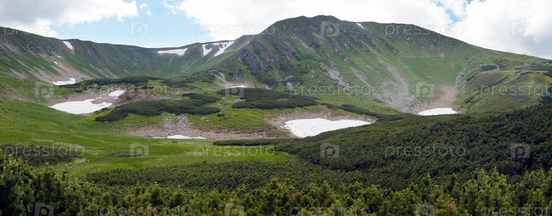 Карпатские горы с можжевеловыми лесами и снегом