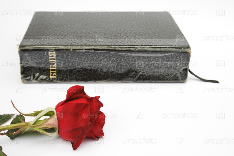 Библия и роза на белом фоне