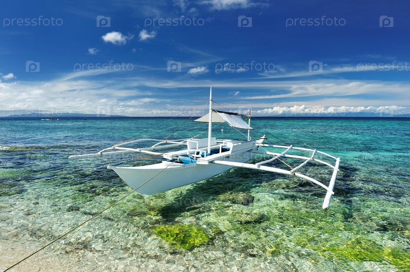Красивая лодка на пляже на острове Баликасаг, Филиппины