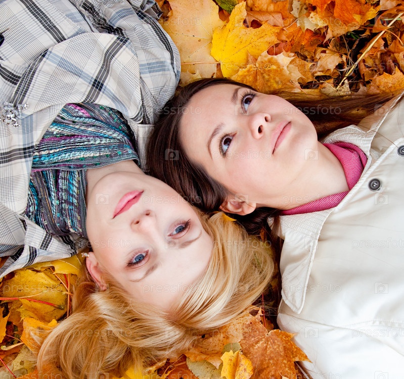 Две девушки на желтых листьях