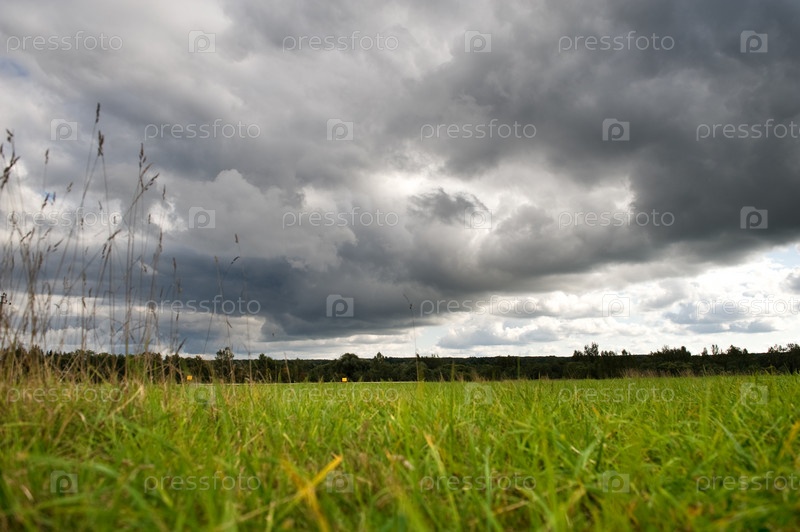 Пейзаж. Зеленое поле и мрачное небо