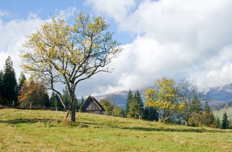 Осенняя поляна в горной деревне, Карпаты, Украина