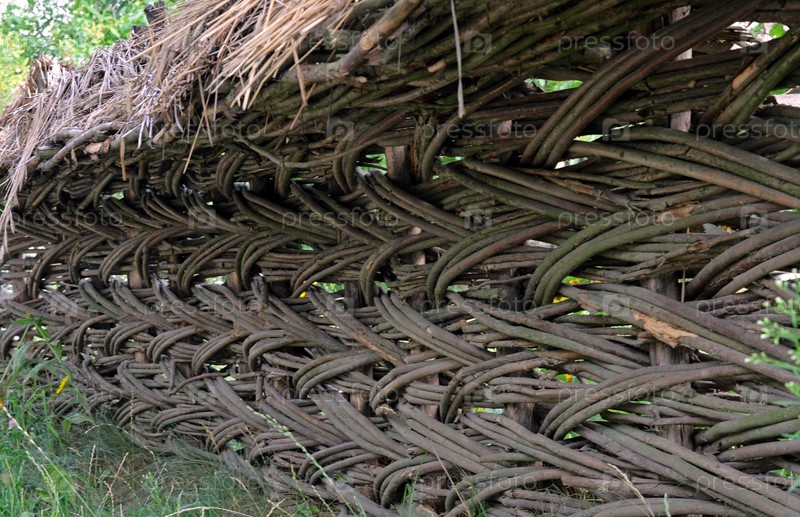 Старый плетеный забор с соломенным верхом