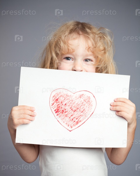 Лист с нарисованным сердцем в руках девочки