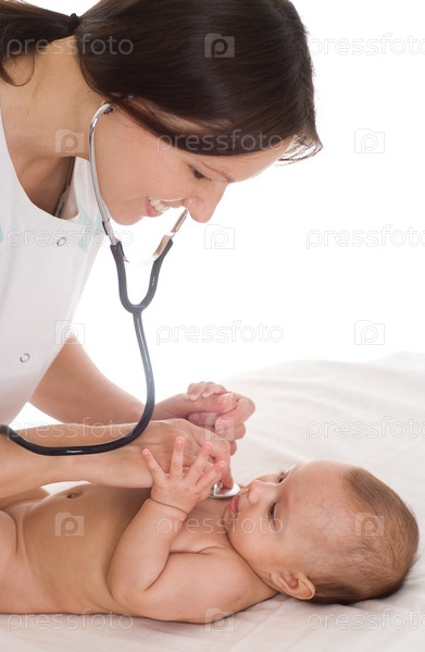 Детский педиатр осматривает младенца