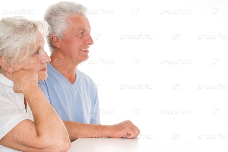 Пожилая пара на белом фоне