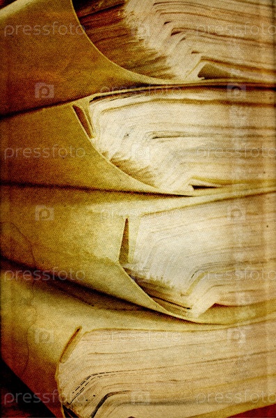 Стопка старых подшитых бумаг крупным планом